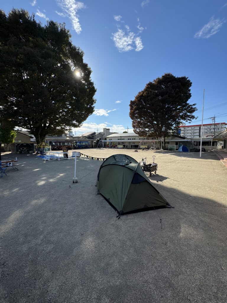 キャンプなどと言うとハードルが高いように思えますが、広い園庭を使って自由に楽しんでもらえれば良いイベントです。