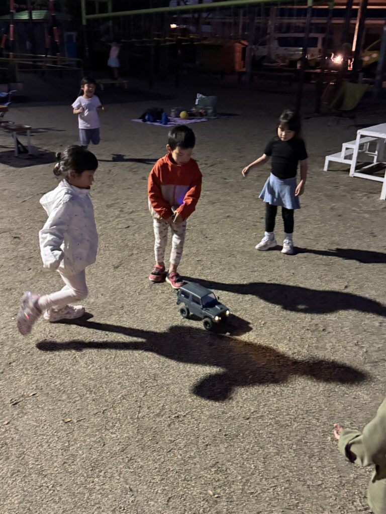 水道がたくさんある、子どもの遊び場もたくさん、事務所と教室前は明るい、家から近いなど、幼稚園キャンプならではの楽さもありますね