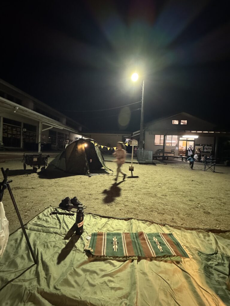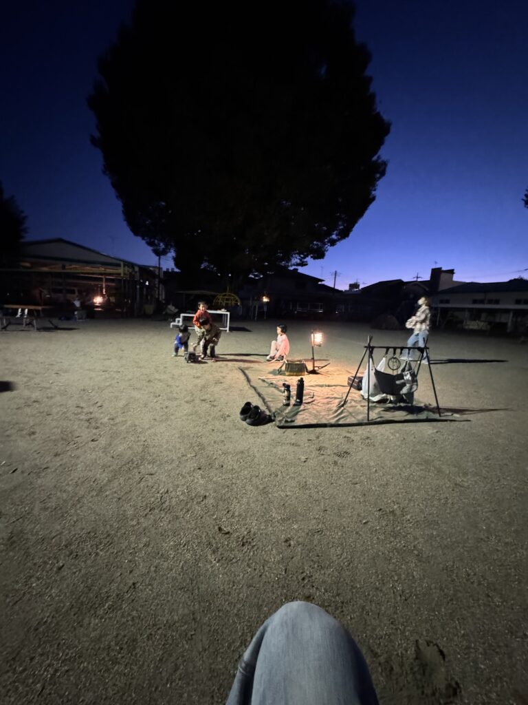 ストライダーや自転車の練習をする。買ったばかりのテントの試し張り。逆上がりの特訓。楽器や歌の披露。チェアに座ってコーヒータイム。カセットコンロでお湯を沸かしてカップメン。園の大きなシートにみんなで寝転んで雲の流れや月や星空を眺めたりetc…泊まる必要も全然ありません。