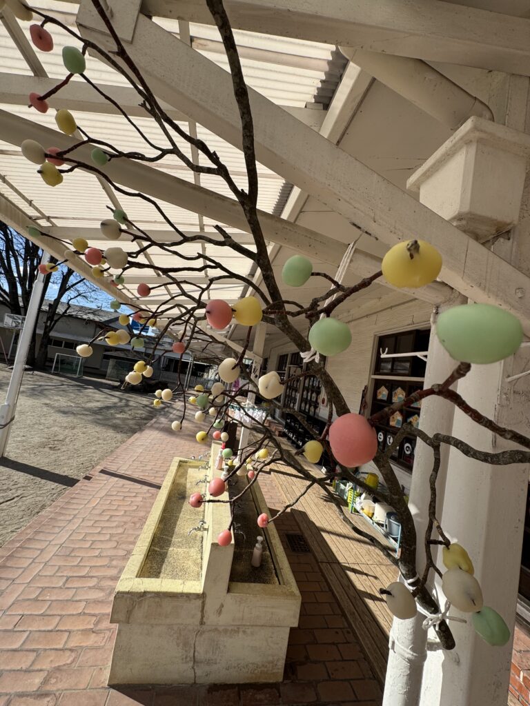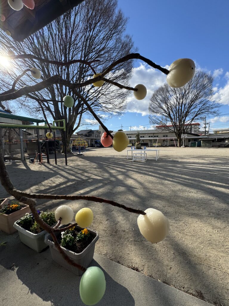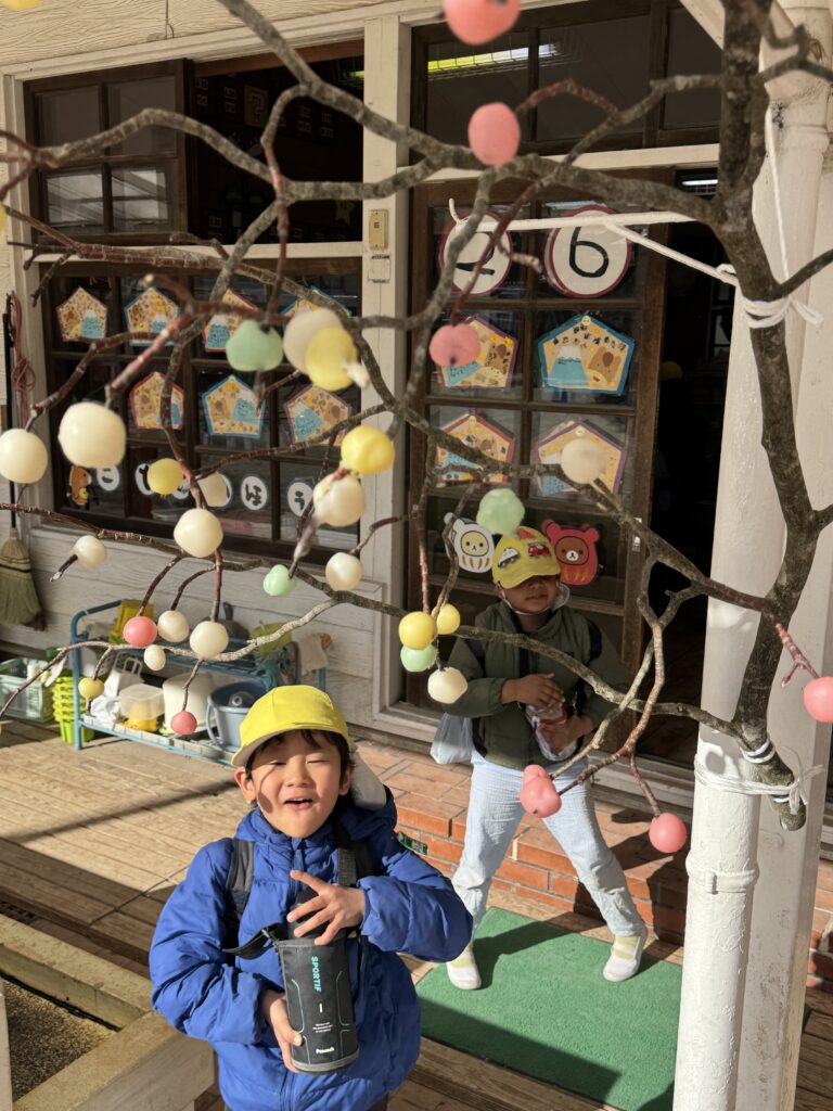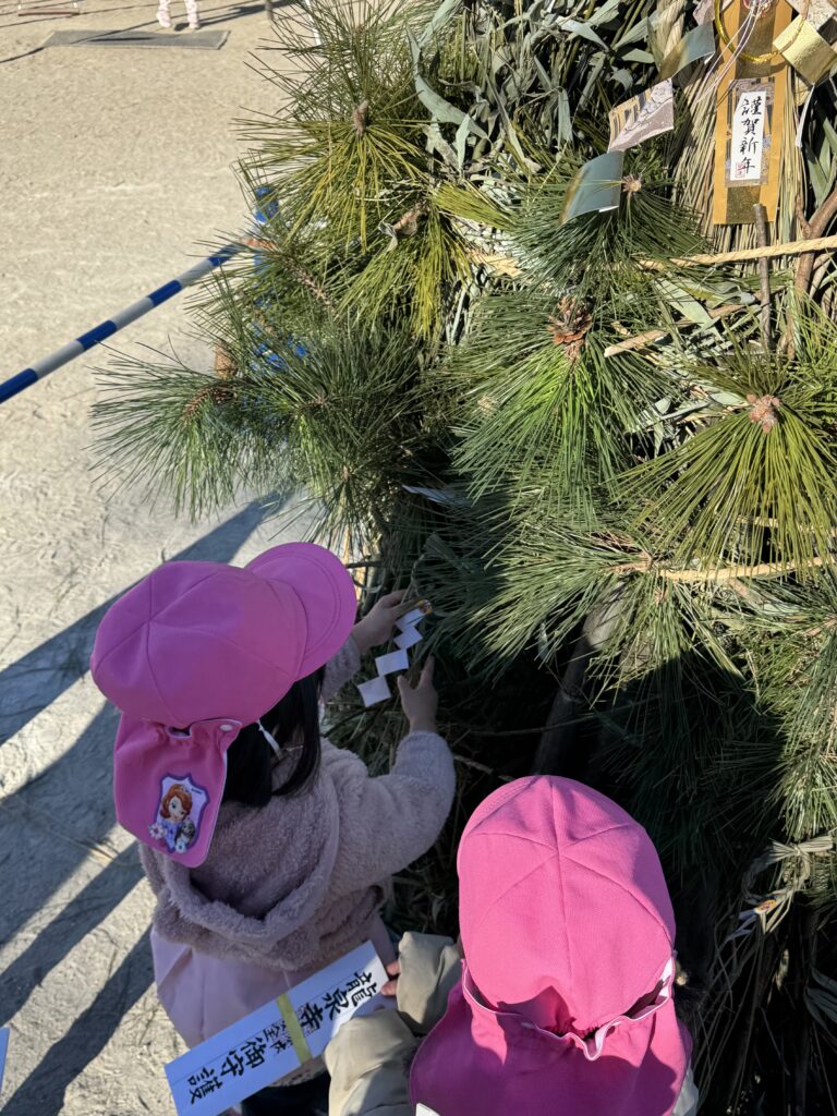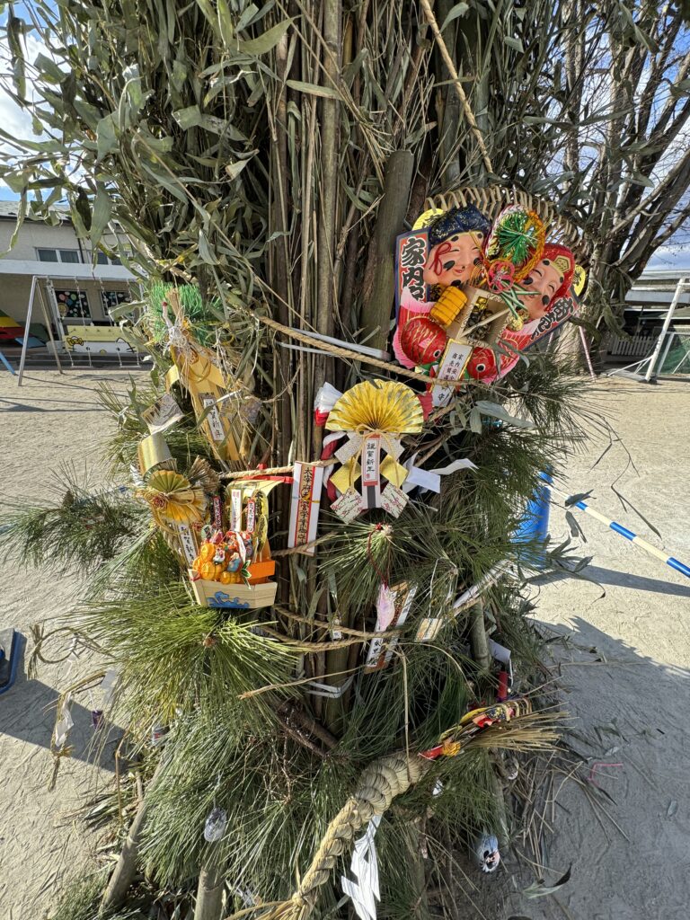 園庭には早くもお札や縁起物が集まっています。