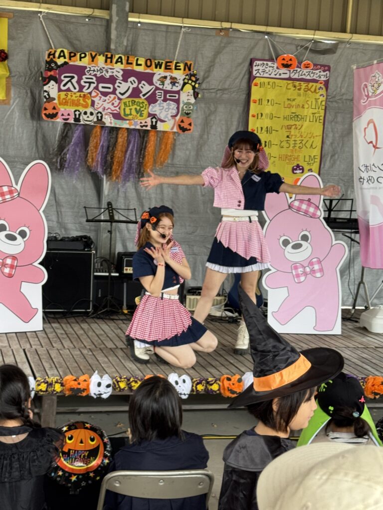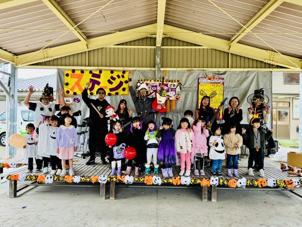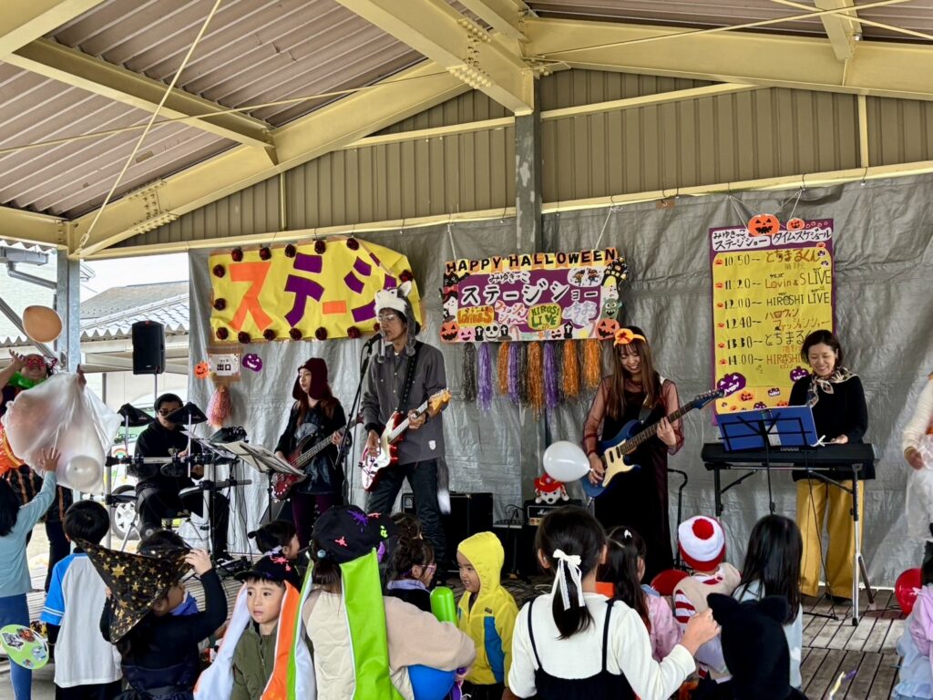 幼稚園祭ステージの部は、とちまるくんやご当地アイドルのLOV’INさん、職員保護者混合バンド。
