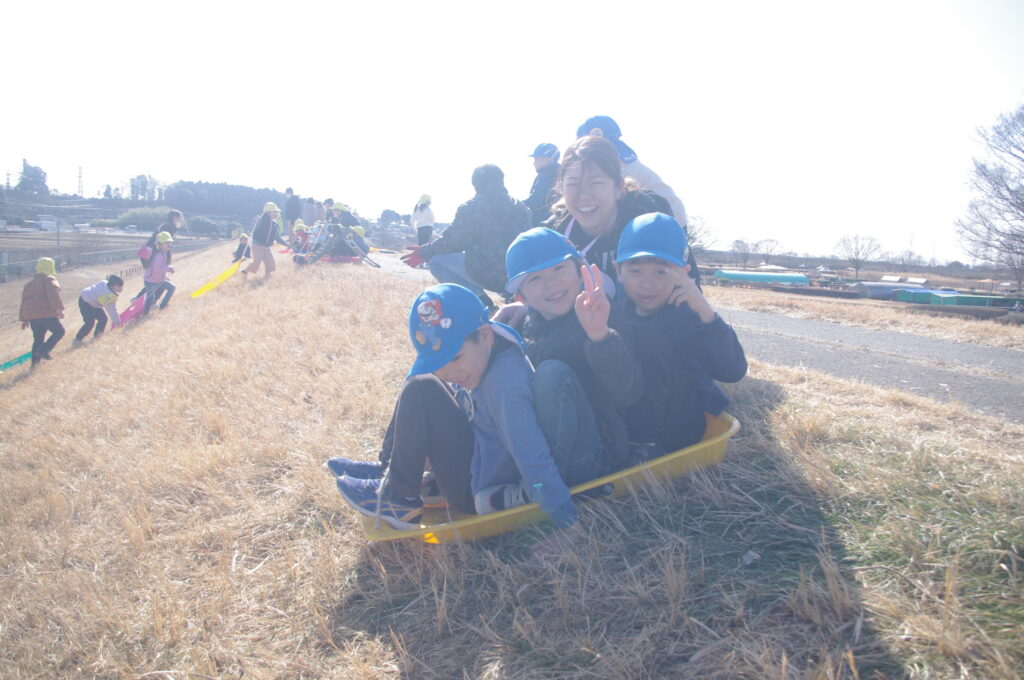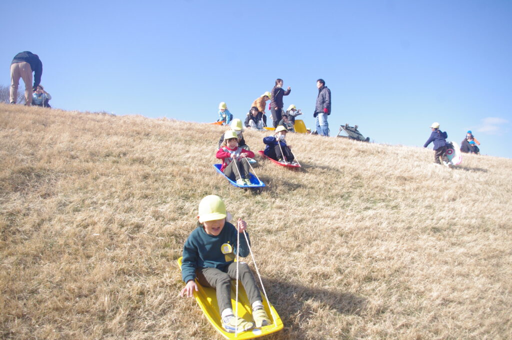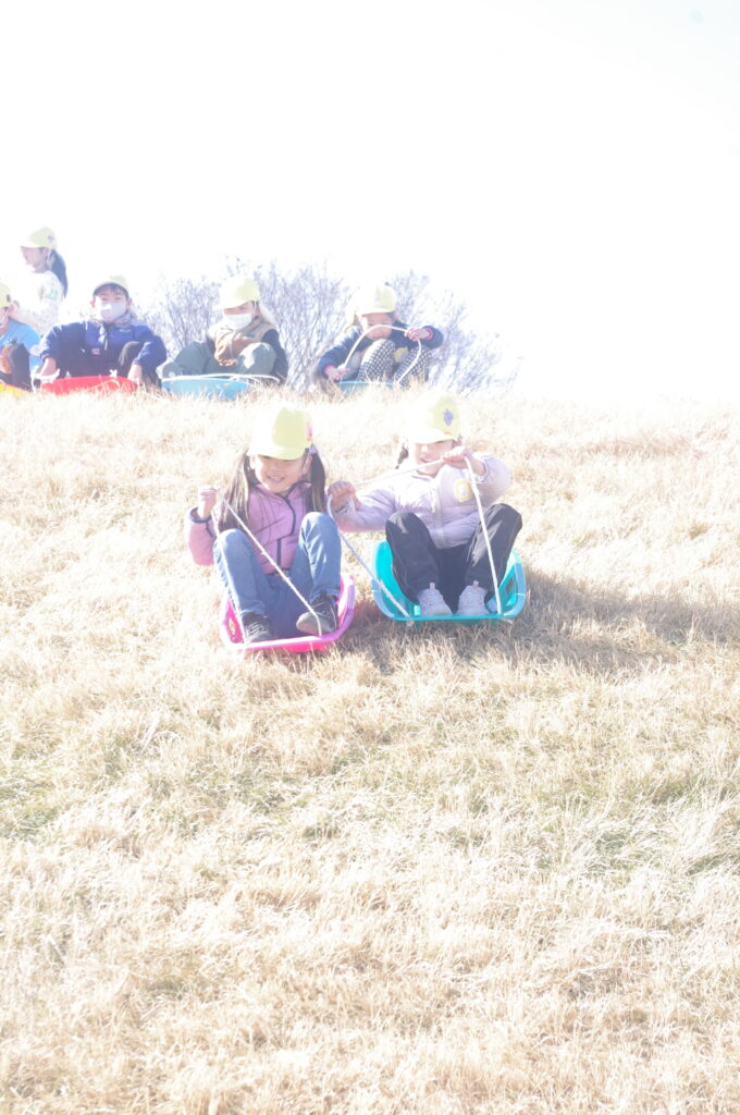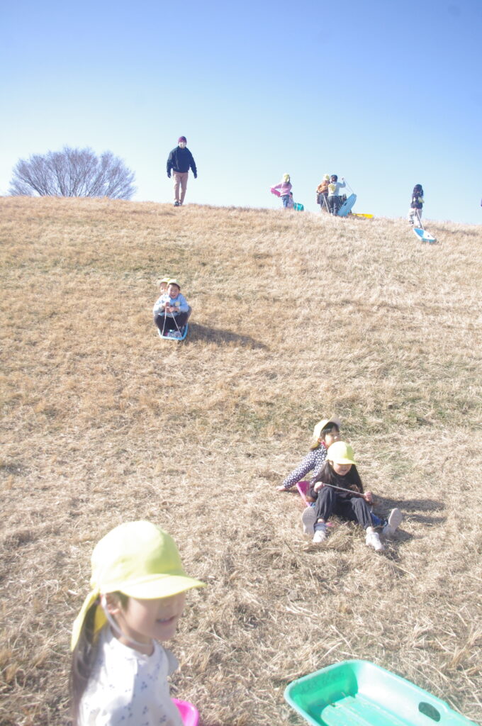 明後日の雪遊び遠足も踏まえて、皆マナーや安全な滑り方もマスターしました。
