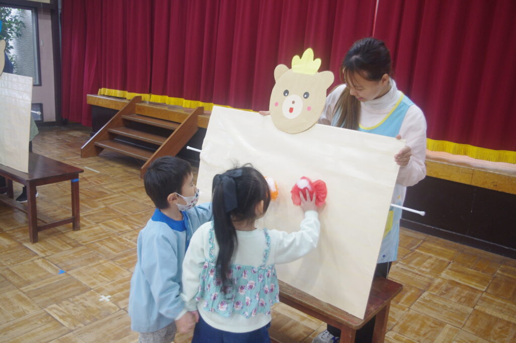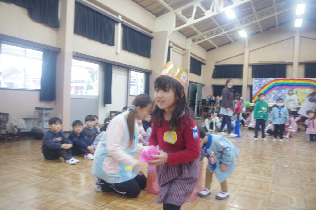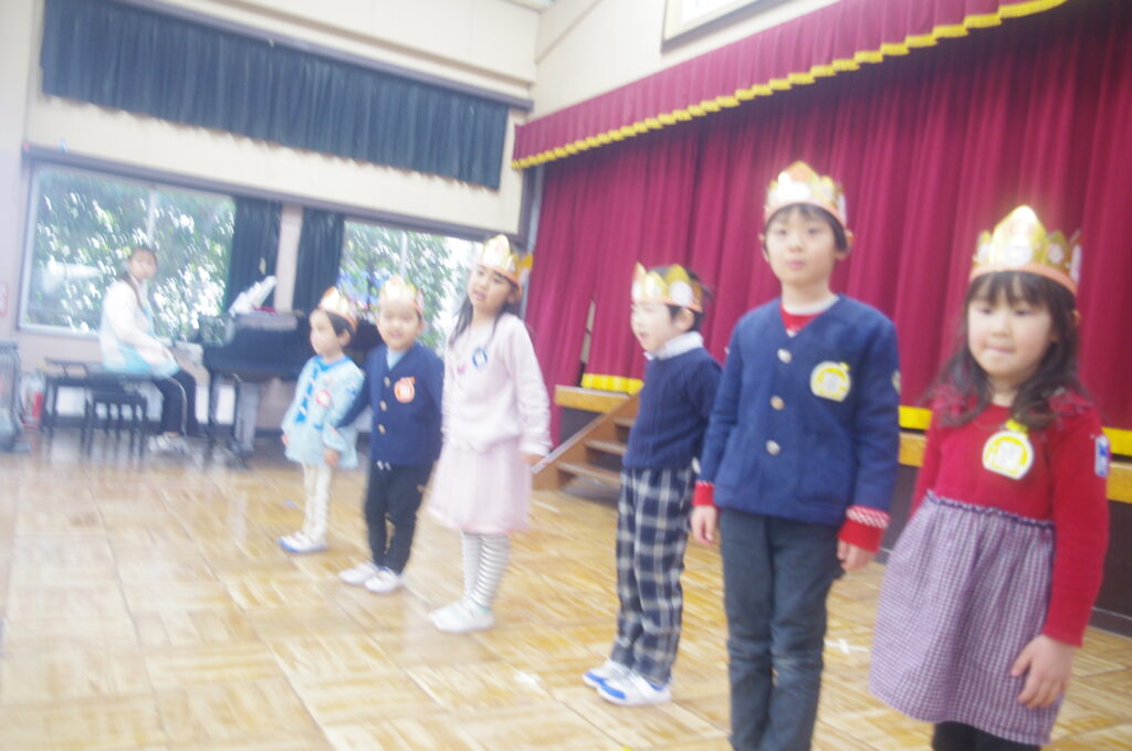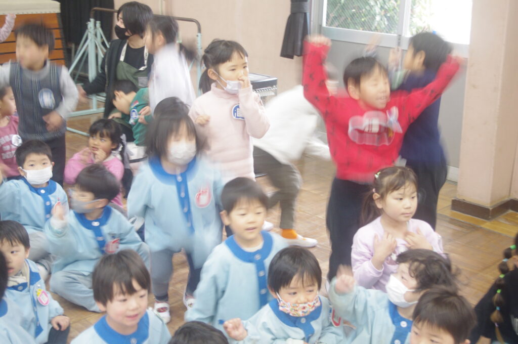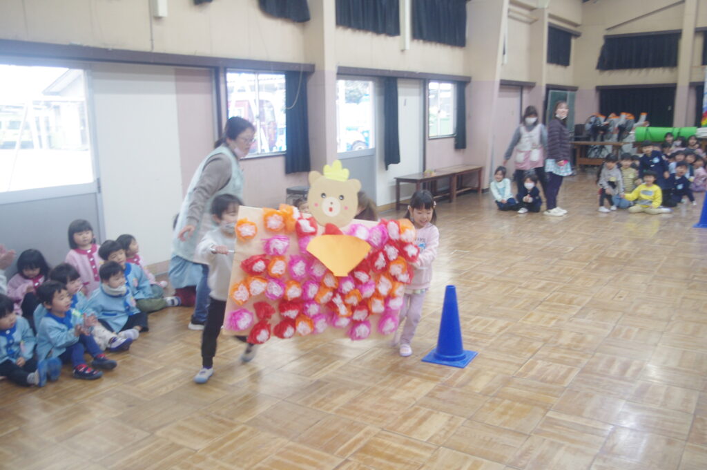 3月にしてはとても寒い日になりましたが、体育館で子どもたちは楽しく身体を動かして、ゲームや歌に勤しんでいました。