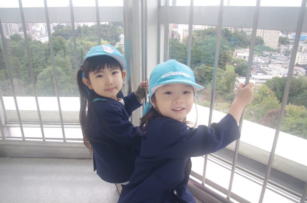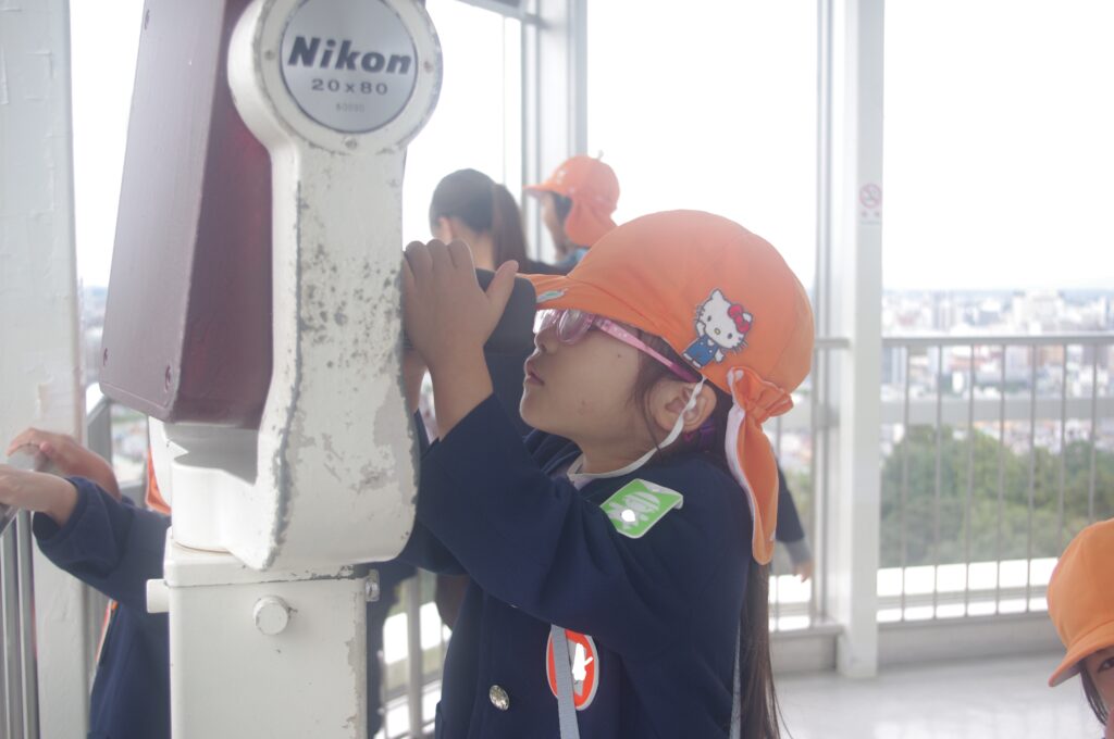 あいにくの曇り空でしたが、自分たちの住む街を遠くまで見通せて、子どもたちも楽しそうでした。