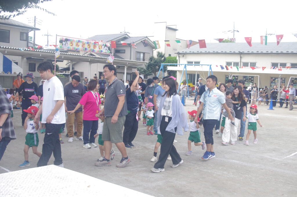 みゆき幼稚園の運動会は保護者の皆様が我が子もそうでない子もみんなでぎゅうぎゅうになって応援する。