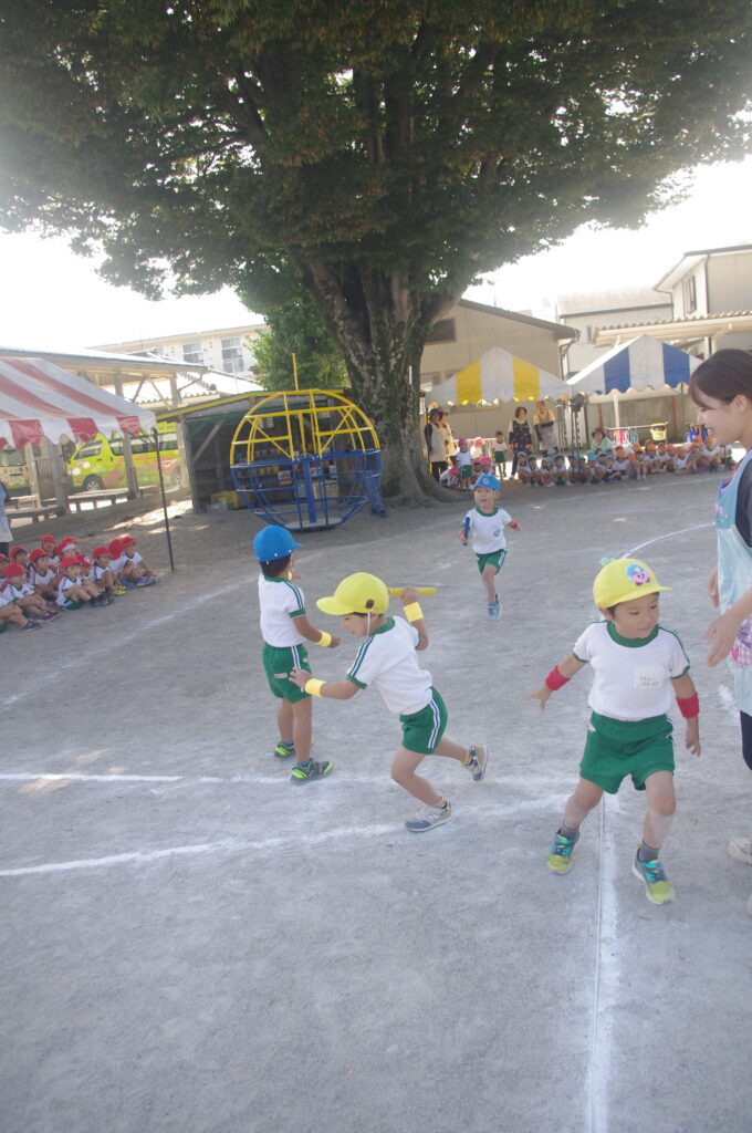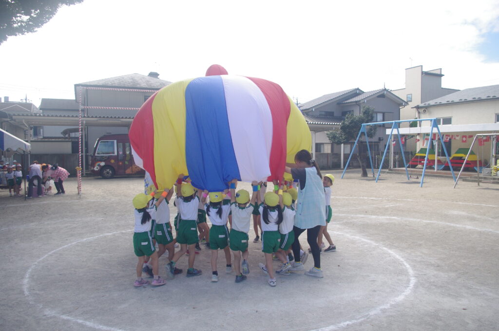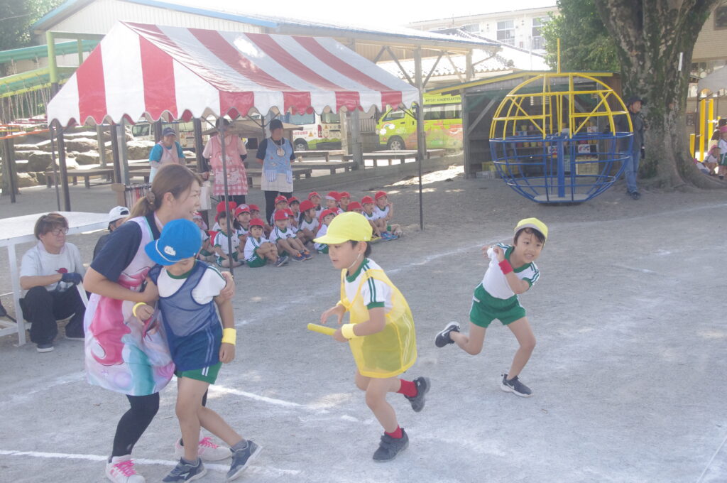 年長組のパラバルーンや年中組のダンス、そしてみんなで応援、毎年盛り上げるクラス対抗リレー。