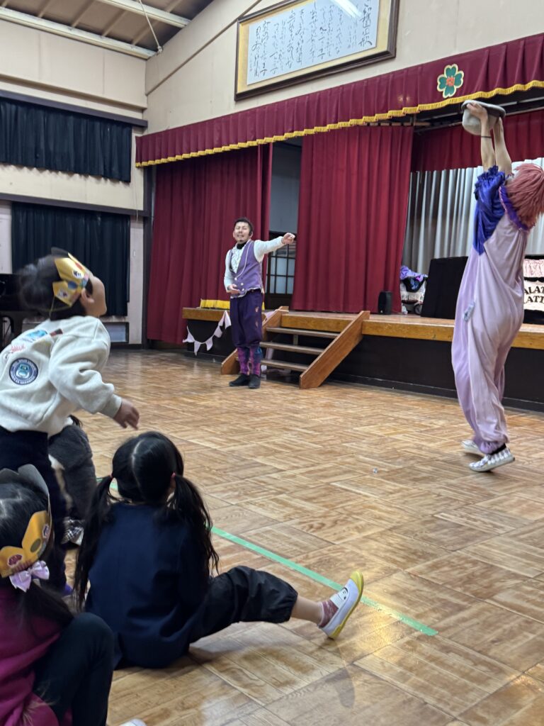 ピエロやジャグラー、アクロバットなど、子どもたちは身を乗り出して楽しんでいました。