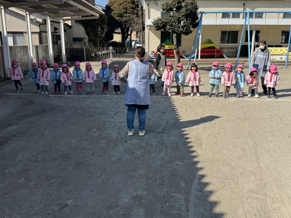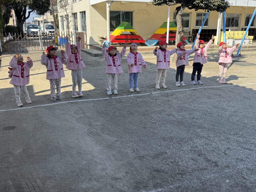 満3歳クラスと年少組は広い園庭をいっぱいに使って行いました。