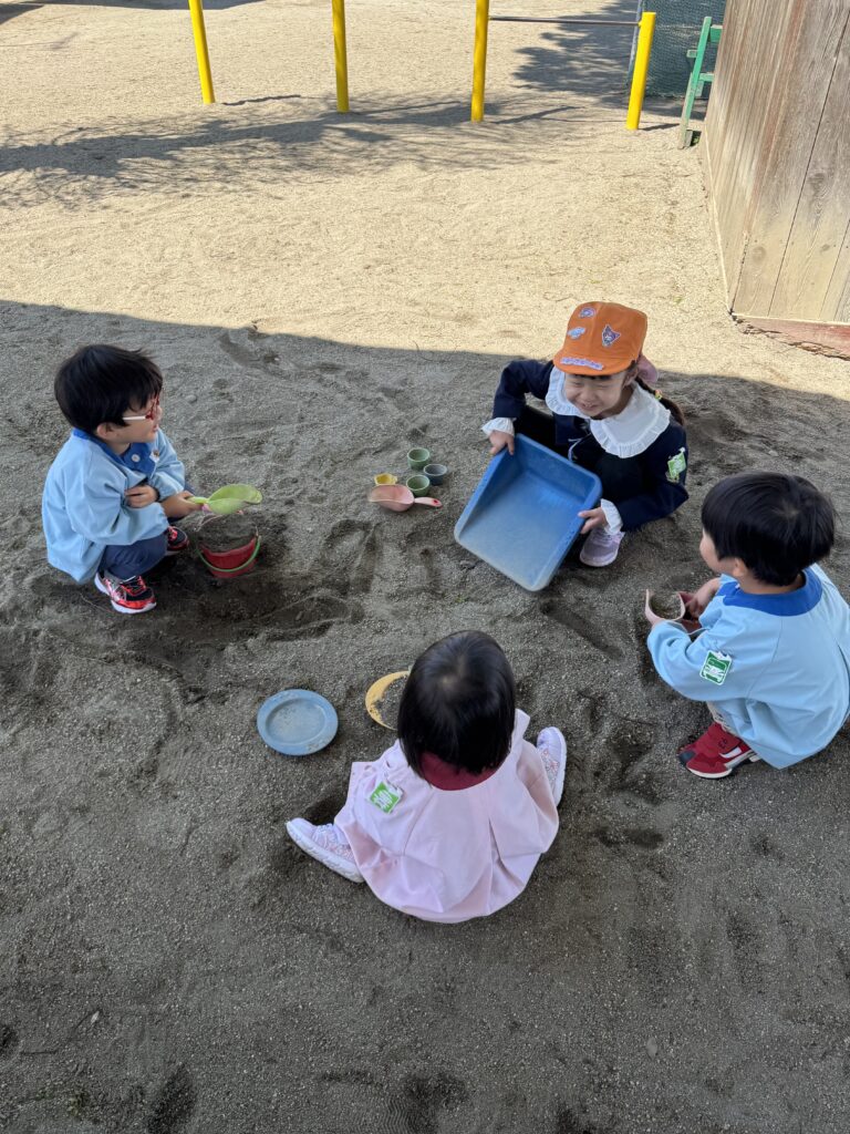 進級した子どもたちも新しい部屋で担任、新任の先生にも元気に挨拶。