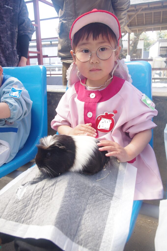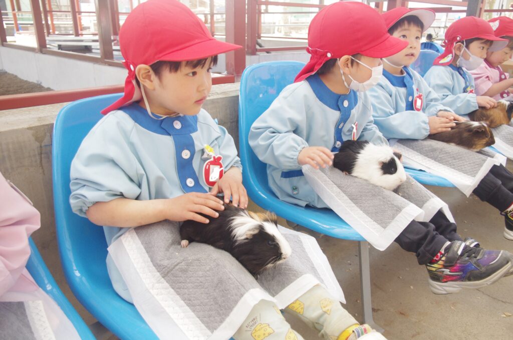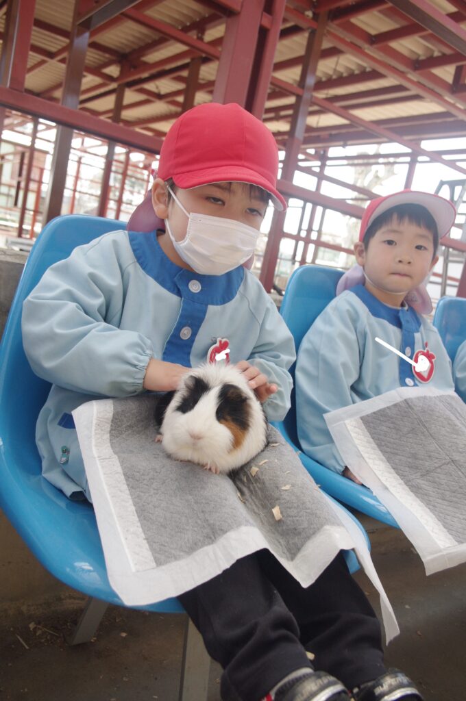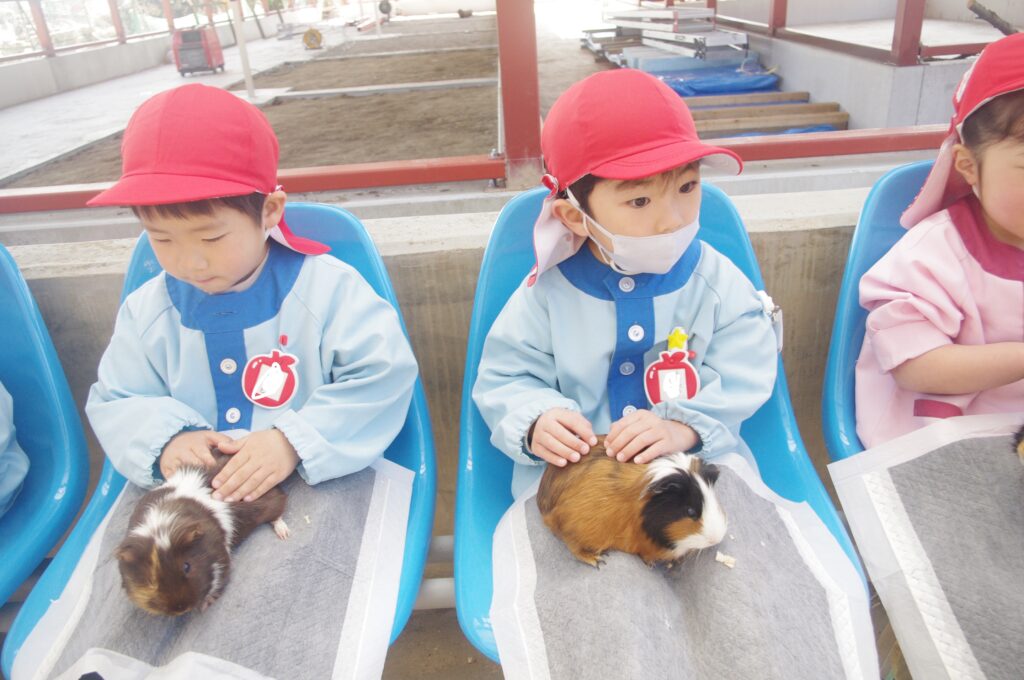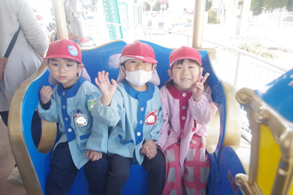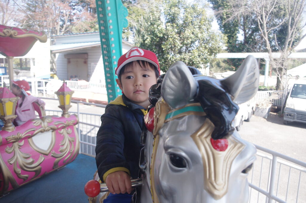 モルモットさんと触れ合いタイムの後は遊園地に移動して、みんなでメリーゴーランドに乗りました。