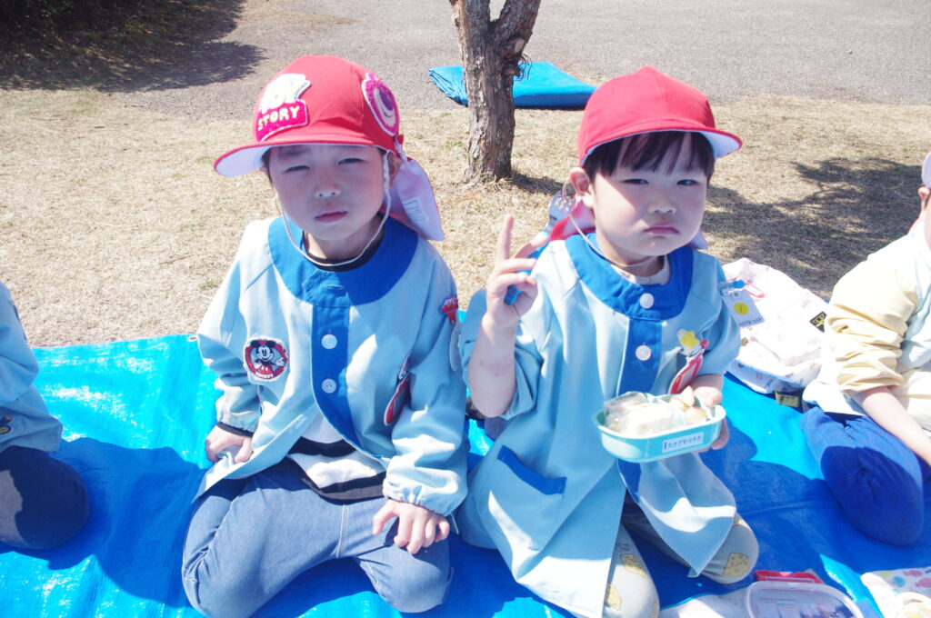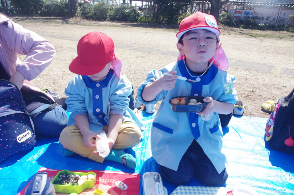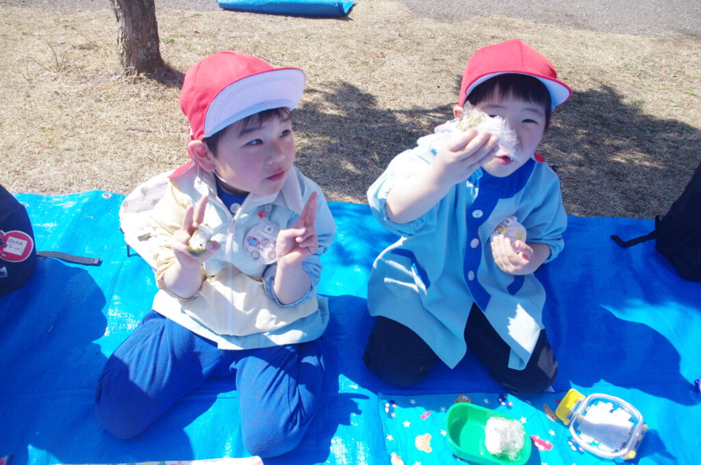 みんなで外で食べる愛情いっぱいのお弁当は何倍もおいしかったね。