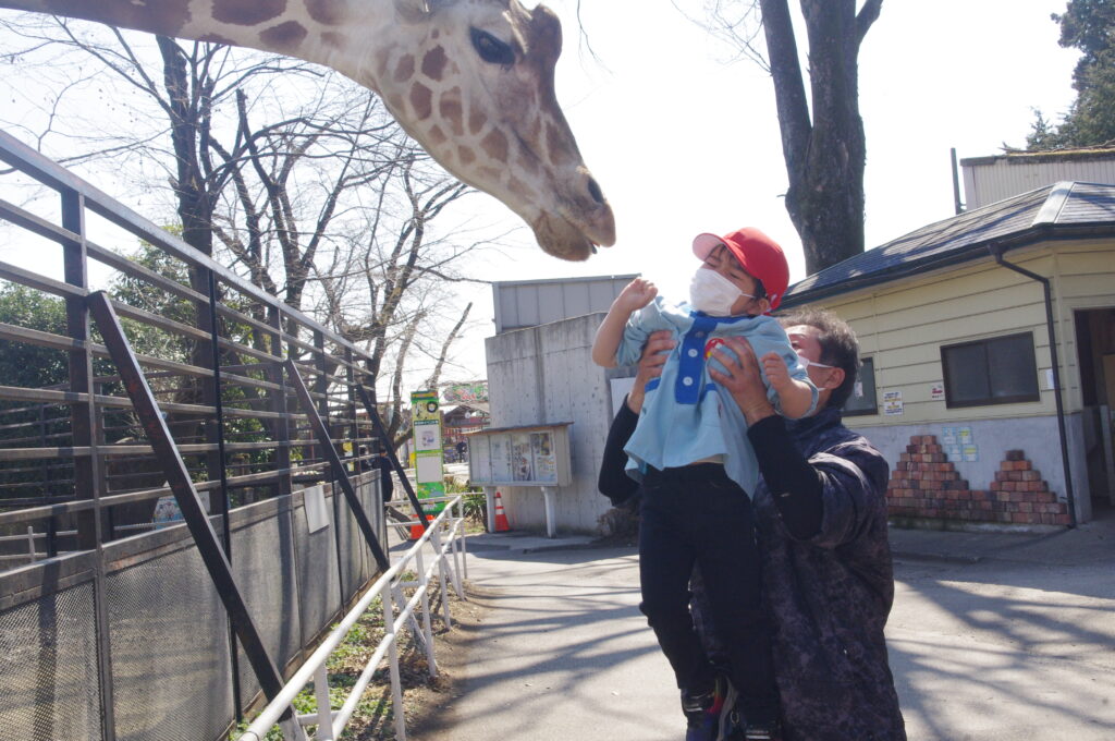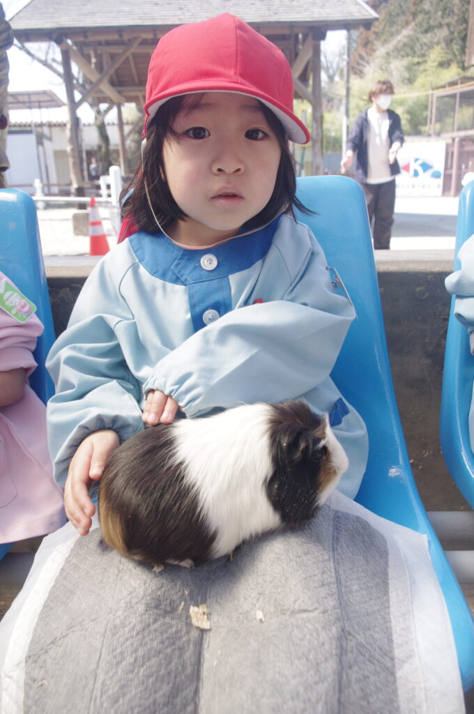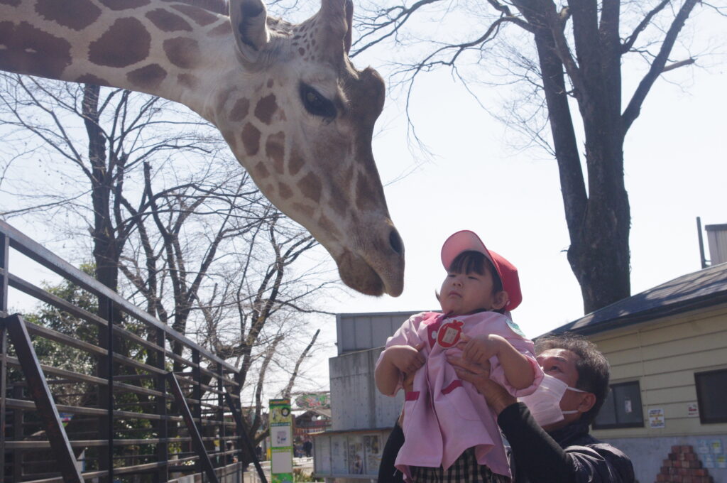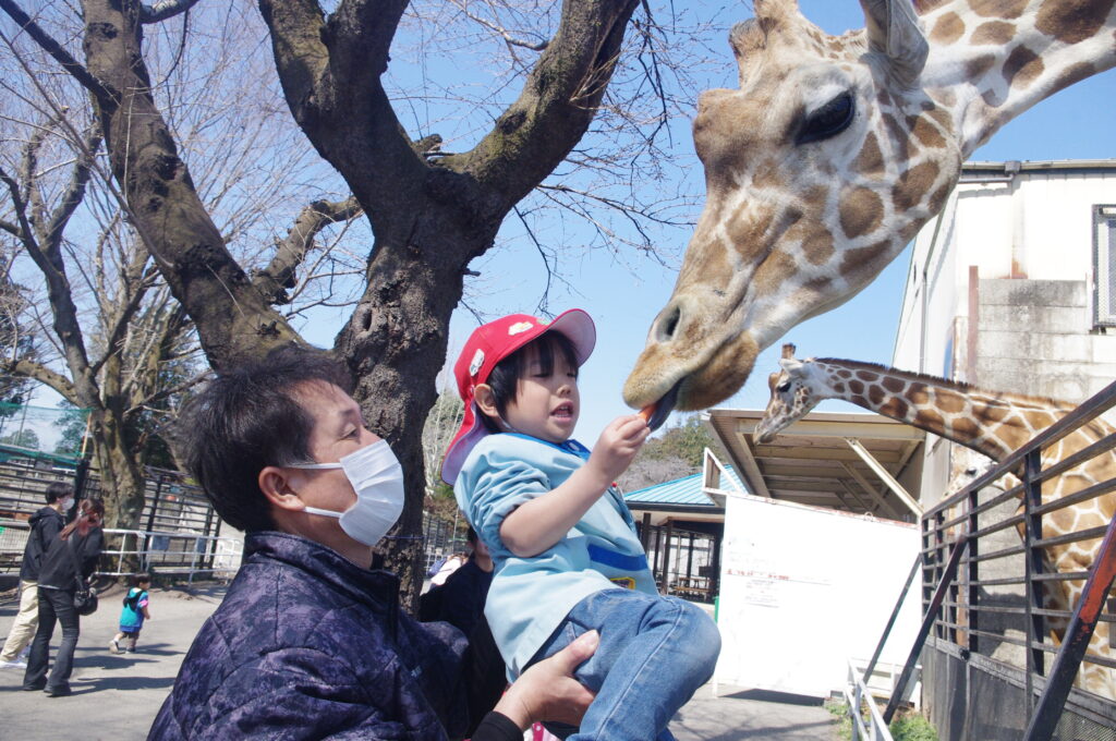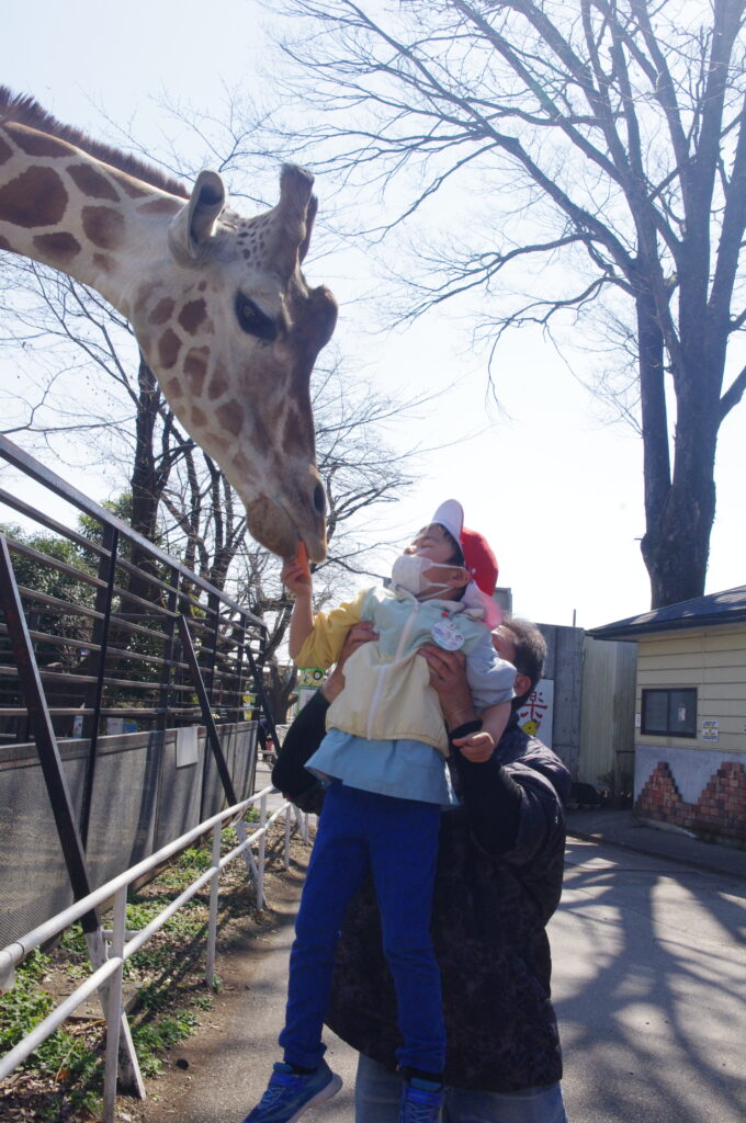 お馴染みキリンさんに餌をあげたり、モルモットと触れ合ったり。